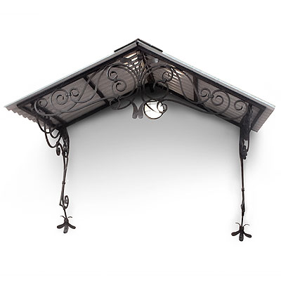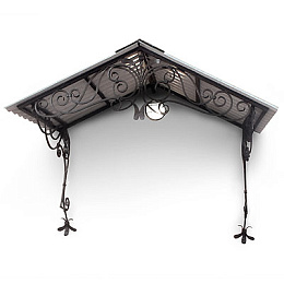 Козырек из профнастила с элементами ковки. Цена указана за козырек размером 1*1м с полимерным покрытием, рама козырька выполнена из трубы профильной 20*20мм, кованые элементы из квадрата 10мм, зашит профнастилом. Стоимость козырька другого размера, монтажа и доставки уточняйте отдельно у менеджеров компании.
