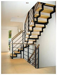 Лестница на профильном каркасе очень надежная и прочная конструкция. Каркас изготавливают из профильных труб диаметра 60х40. Профильные трубы располагаются параллельно друг другу, сверху устанавливаются металлические или деревянные ступени по вашему выбору. Особенностью данной лестницы является ее невысокая несущая способность, в связи с чем данная лестница широко используется для дач, небольших загородных домов, в качестве лестницы на чердак и дополнительной лестницы. Как правило, лестница на двух косоурах 60х40 имеет небольшие размеры и используется в небольших помещениях.