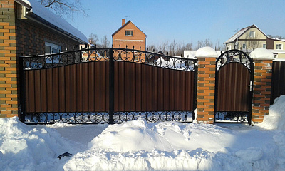 Кованые ворота с заполнением из профнастила