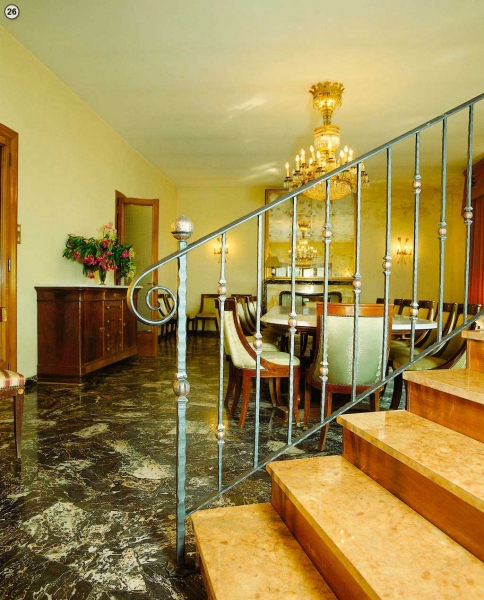 Металлические перила с декоративными вставками в балясины.