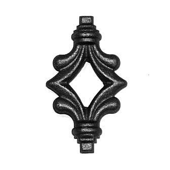 Вставка в балясину, литье, сталь. Применяется при изготовлении кованых ворот, заборов, лестничных перил и других изделий художественной ковки.
