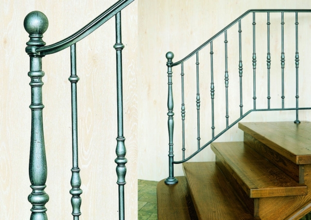 Перила лестничные, состоящие из металлических балясин с литыми вставками. Данные перила послужат не только надежной ограждающей конструкцией для вашей лестницы, но и придаст ей уникальность и привнесет изюминку в интерьер вашего дома. Наша компания готова предложить вам разнообразные перила и ограждения для лестниц собственного производства и производства известных мировых производителей.