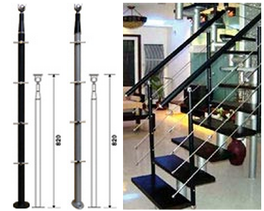 Стойка ограждения со спицедержателями под 4 спицы диаметром 8 мм. Материал: стальная трубка диаметром 30 мм, с приваренным нижним фланцем, крашенная порошковой краской ( В – черный цвет, G – серый цвет) Фурнитура: 4 спицедержателя и вставка с коромыслом держателя поручня. Пластик черного цвета, металл гальванизированный, нержавеющая сталь. Высота: стойка в сборе 850 мм, высота ограждения 900 мм. Регулировка по высоте – за счет фурнитуры ± 5 мм. Описание, примечания и рекомендации при установке стойки: Стойка поставляется в разобранном виде. Два места: стойка и пакет с фурнитурой. Шурупы для крепления стойки и поручня в комплект не входят. Коромысло для крепления поручня имеет поворотный шарнир. Стойки предназначены под поручень диаметром 50 мм. Спицедержатели для спиц диаметром 8 мм. Стойки на лестничных маршах устанавливаются через одну – две ступени, так что бы расстояние между ними было не более 70 см. В противном случае прочность ограждения снижается и вероятно провисание спиц. Расстояние в 50 – 70 см между стойками следует соблюдать и при сборке ограждения проемов и балюстрад. Стойка крепится в ступень тремя шурупами диаметром 8 мм. Головки шурупов не закрываются. Дополнительно можно приобрести шурупы гальванизированные 8 на 35 мм и 8 на 45 мм с головкой под шестигранный ключ. Производитель: КНР