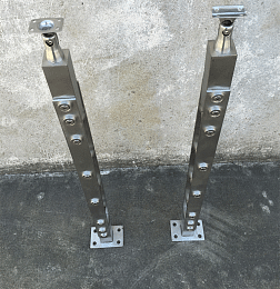 Стойка стальная нержавеющая с приваренным нижним фланцем.Высота стойки 870мм. В комплекте 4 ригеля и вставка с коромыслом держателя поручня - металл гальванизированный, нержавеющая сталь. Описание, примечания и рекомендации при установке стойки: