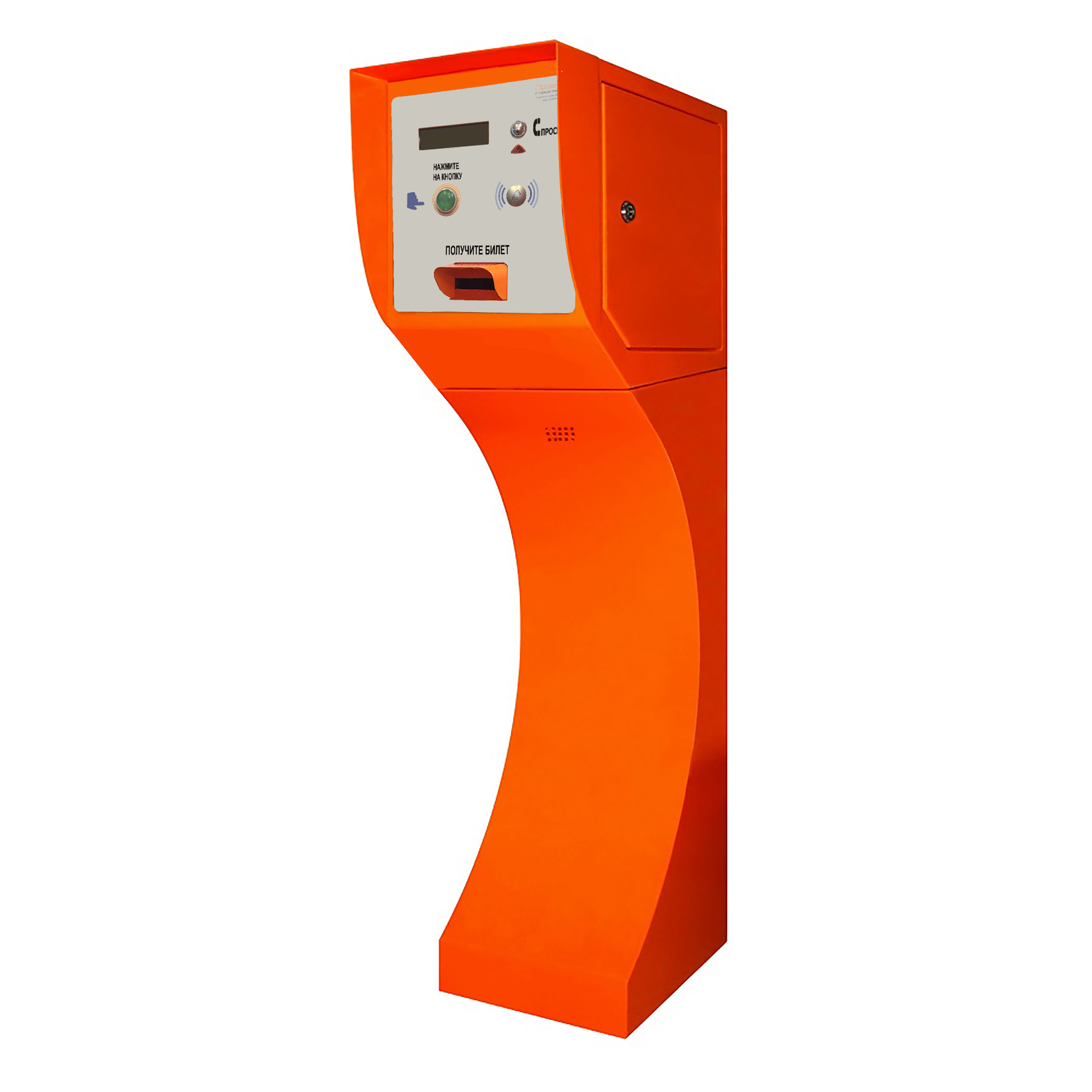 Посетитель нажимает соответствующую кнопку. После чего принтер, установленный в корпусе въездной стойки, печатает разовый билет со штрих-кодом и выдает его посетителю. На билете указывается: время въезда, тарифы на парковку, дополнительная информация.