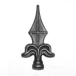 Пика, стальная, штампованная, навершие. Применяется при изготовлении кованых заборов, ворот, декоративных ограждений, решеток и в других изделиях художественной ковки.