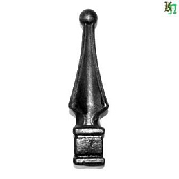 Пика, стальная, штампованная, навершие. Применяется при изготовлении кованых заборов, ворот, декоративных ограждений, решеток и в других изделиях художественной ковки.