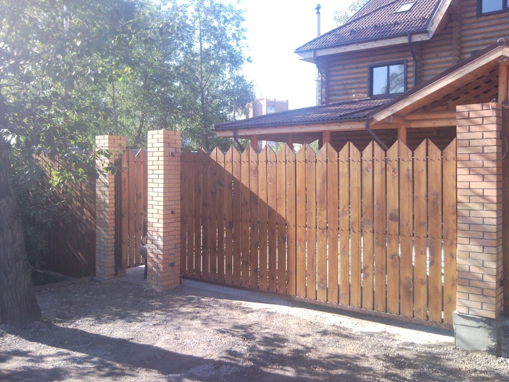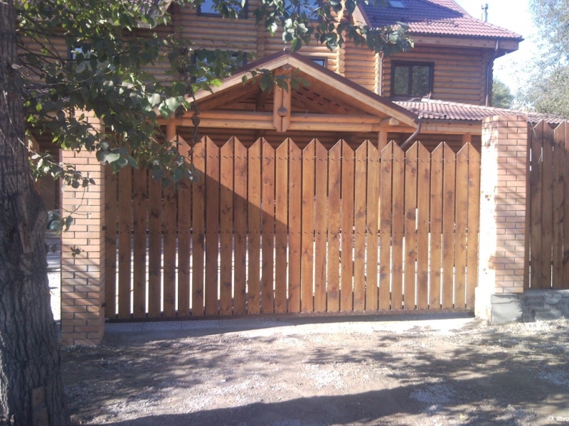 Откатные ворота с деревом