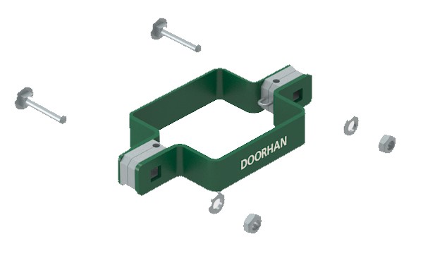 Система крепления. Специальная конструкция позволяет упростить монтаж систем ограждений и повысить их взломоустойчивость. Все элементы изготавливаются методом штамповки из горячекатаного листа с последующим цинкованием и порошковой покраской. Варианты крепежа заборной секции к столбу в виде хомута позволяют смонтировать забор на любых участках с перепадами ландшафта и различными углами поворотов.