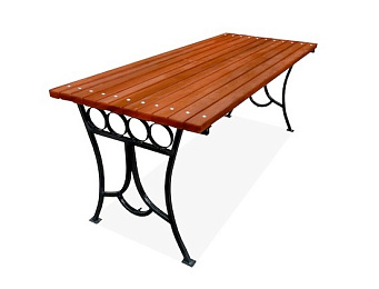 Стол "Олимп" длиной 1,5 метра Материалы: • Опоры: Сталь, порошковая окраска. • Столешница: Брус, изготовленный из хвойных пород древесины класса "А". Покрыты антисептическими пропитками, тонировкой и яхтным полуматовым лаком в 2 слоя. • Стол оснащен дополнительным усилением от раскачивания. • Изделие пригодно для использования во всесезонных атмосферных условиях.