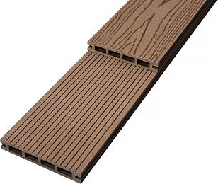 Бархатистая текстура и цвет приближает внешний вид к натуральному дереву, в отличие от большинства аналогов террасной доски, внешний вид которых выдает пластиковую основу профиля из ДПК.