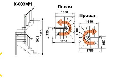 Высота от пола нижнего этажа до пола верхнего этажа: 3120 мм