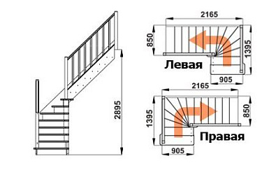 Высота от пола нижнего этажа до пола верхнего этажа: 2895 мм