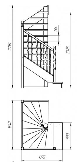 Высота лестницы: 2525 мм