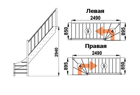 Высота от пола нижнего этажа до пола верхнего этажа: 2940 мм